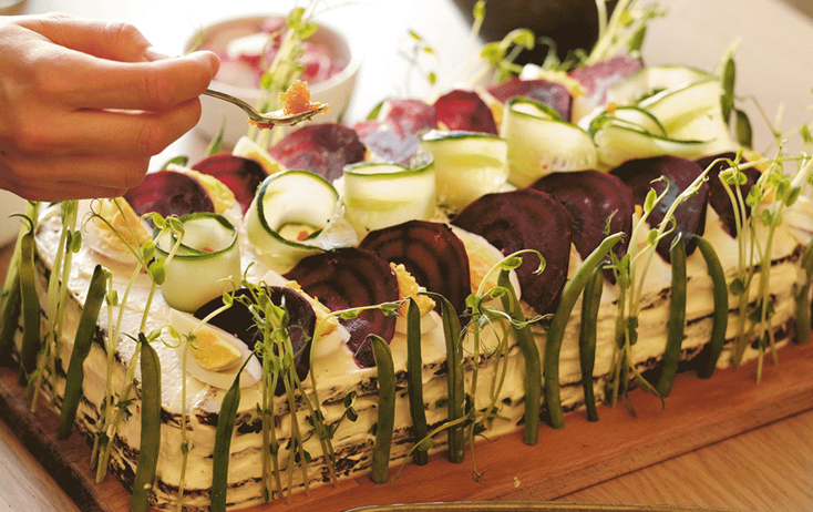 Gron Smorgastarta Med Varmrokt Lax Och Avokado Viva Vin